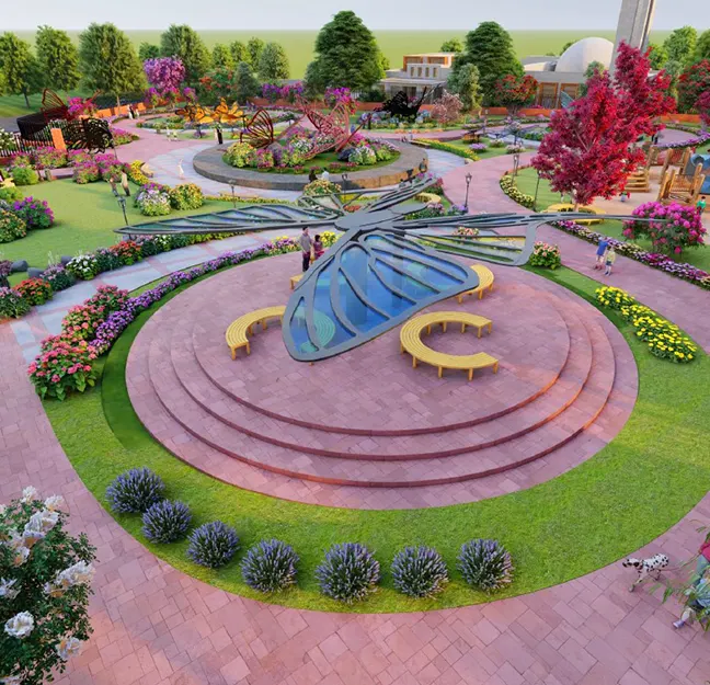 Butterfly Garden in New Metro City, Gujar Khan is a floral haven where vibrant blooms create a peaceful retreat for residents to enjoy nature's beauty.